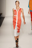This designer has to be one of my most favorites. I stumbled upon his collection last year after reading about his work in a magazine. After looking up his collection and finding out about his star studded clientele (Michelle Obama, Zoe Saldana and Demi Moore to name a few), I cannot stop talking about Prabal. The collection started off very strong. The first couple of dresses had electric blues and bright reds in the mix as well as some orange. What I really like about Prabal is that he knows how to infuse geometry in his collection, and he knows how to do it well. The color cutouts, the angles on his dresses and tops, they all work perfectly together. As the show proceeded there were more dresses and an abundance of modest skirts in silky fabrics. When the more "red carpet" dresses came out, they were absolutely stunning. Beautifully cut dresses dripping in sequins and embellishments on the shoulders, floral ruffled dresses floated down the runway, and a gorgeous yellow halter dress slit perfectly in the middle, it couldn't have gotten any better. I love Prabal's collection this season and I only hope he gets bigger and better in the design world. Here are some looks from the show.